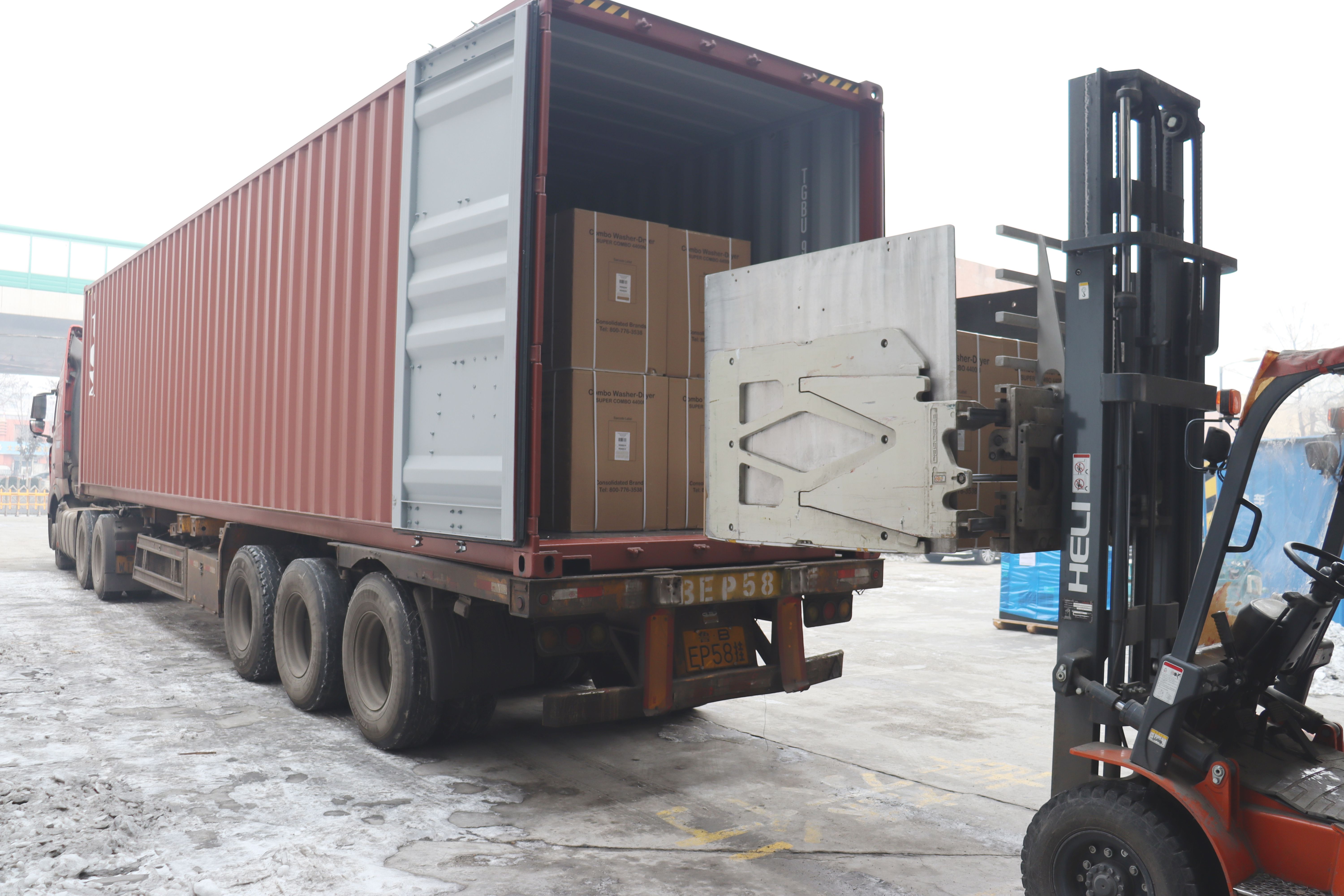 1月4日9點(diǎn),兩輛大柜貨車(chē)、一輛小柜貨車(chē)依次進(jìn)入家電公司園區(qū),現(xiàn)場(chǎng)負(fù)責(zé)人快速調(diào)配人員,指揮叉車(chē)師傅、裝貨師傅等一線工人操作各類(lèi)機(jī)器有條不紊、迅速高效地進(jìn)行本次發(fā)貨任務(wù)。